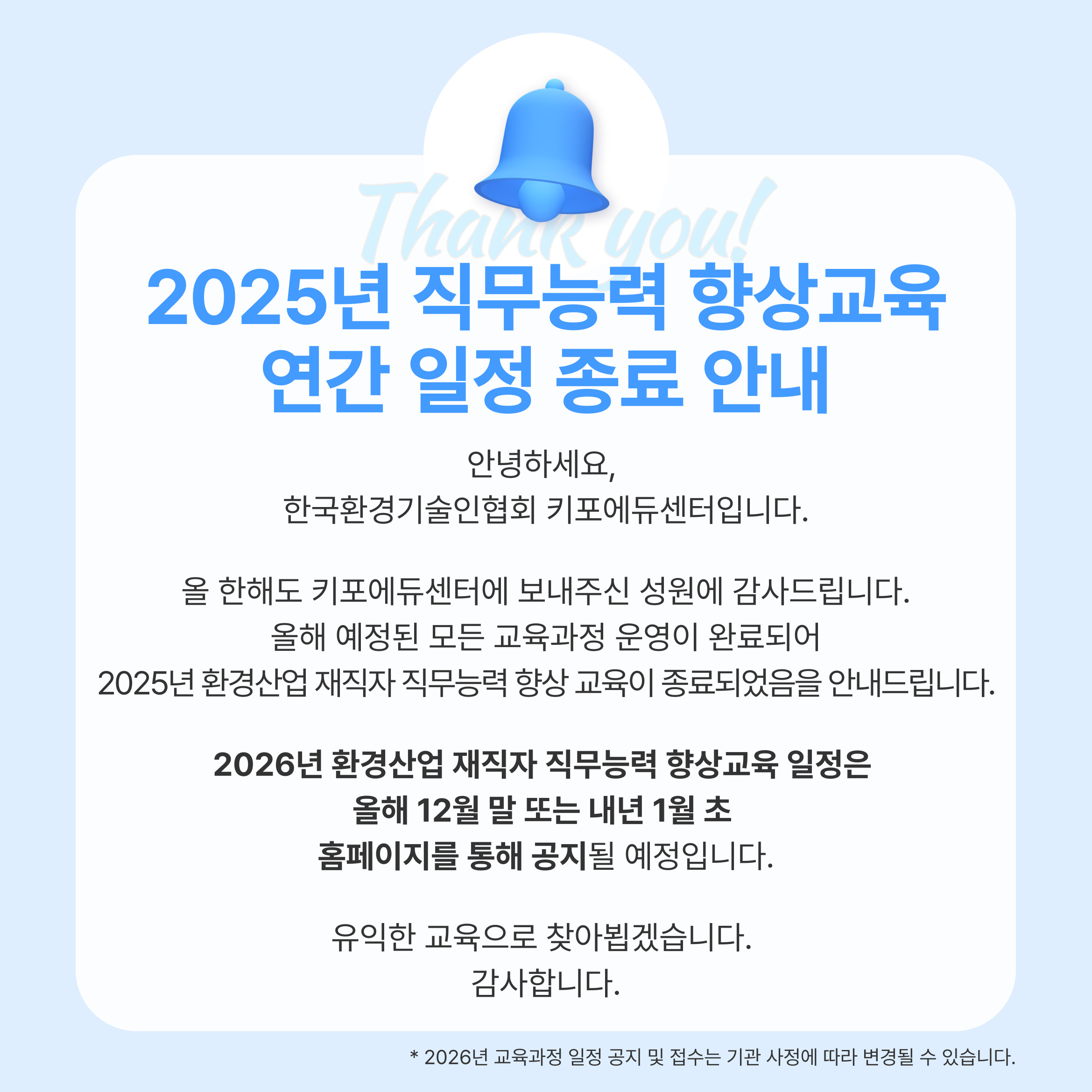 [전문교육] 2025년 직무능력 향상교육 연간 일정 종료 안내